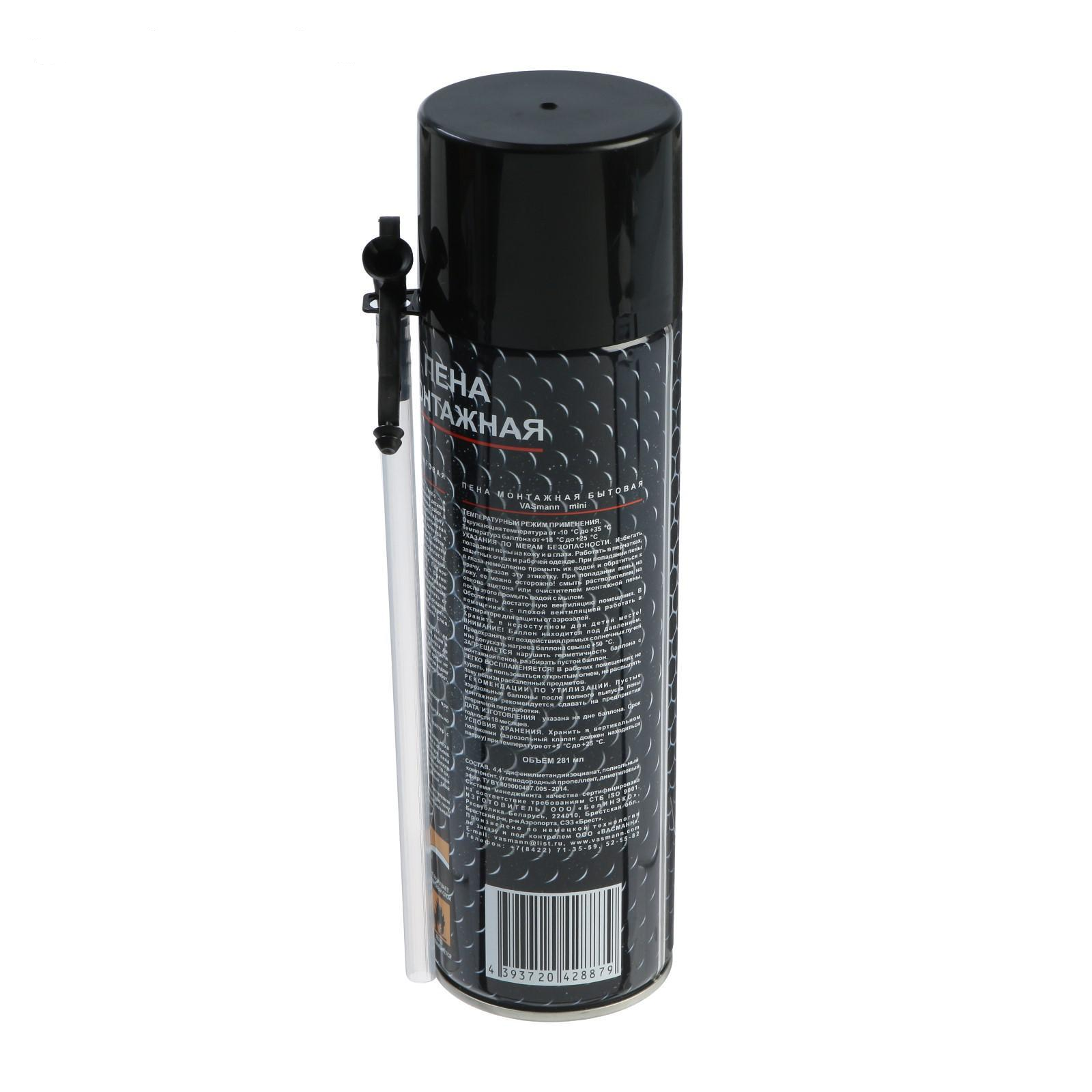 Пена монтажная бытовая всесезонная Vasmann Mini, выход до 20 л информация: