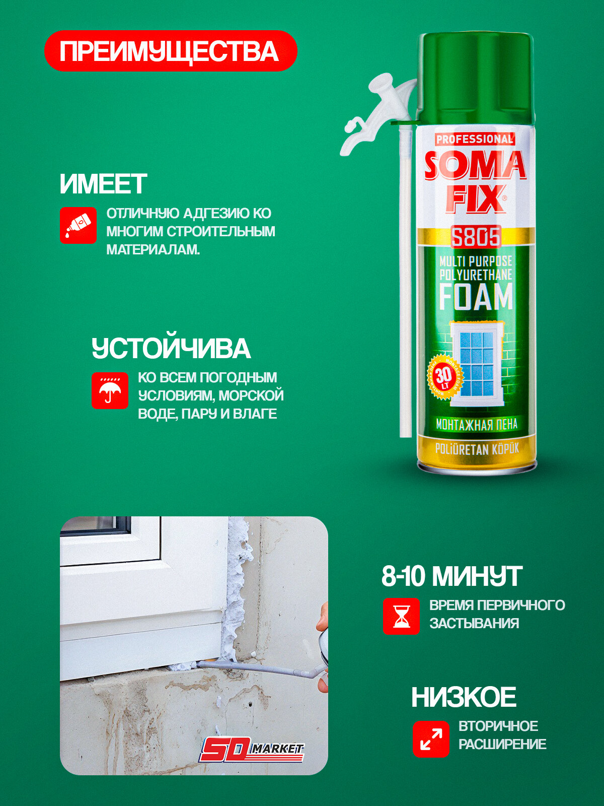 10 цен на Пена монтажная с трубкой 500мл, пена монтажная бытовая Somafix, выход до 30 литров