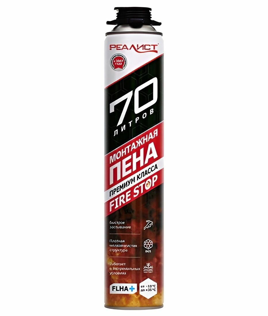 Отзывы на Монтажная пена REALIST PRO PRO, огнестойкая, 870 мл, пистолетный выпуск