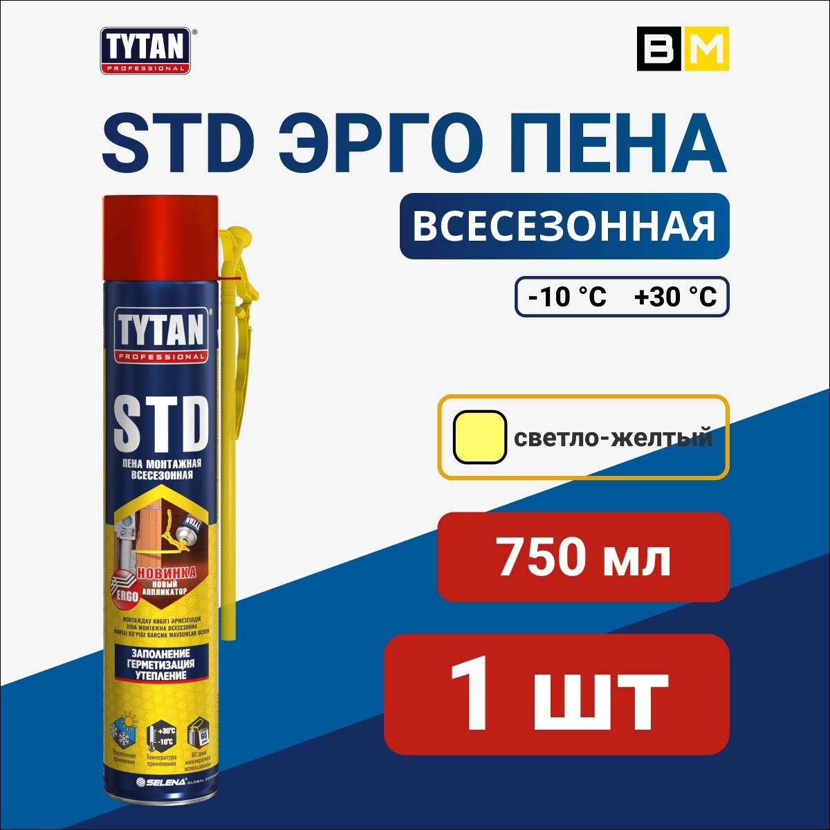 Монтажная Пена Tytan Professional STD ERGO Всесезонная 750 мл, 1 шт информация: