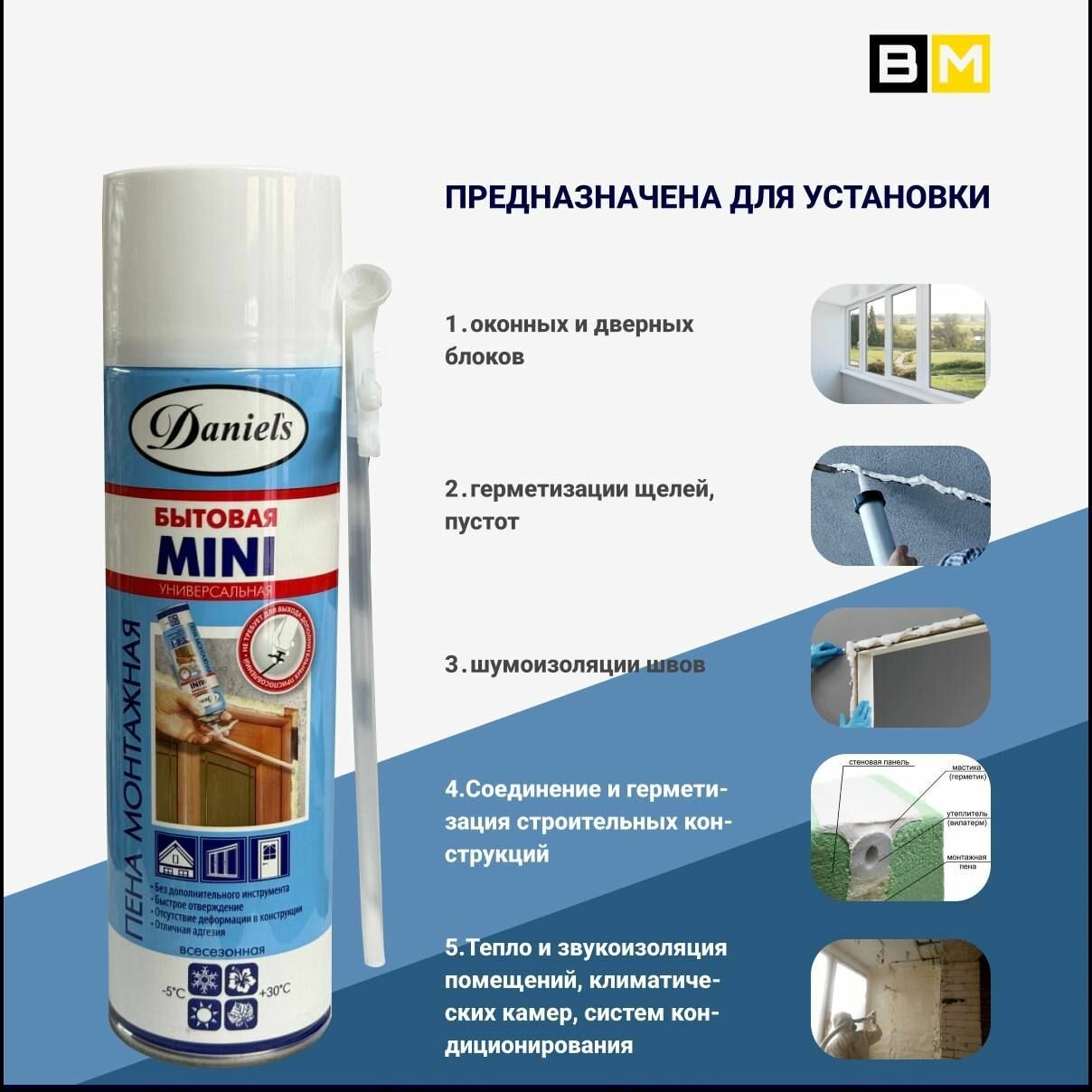 Бытовая монтажная пена, Всесезонная 500 мл, Daniels, 1 шт информация: