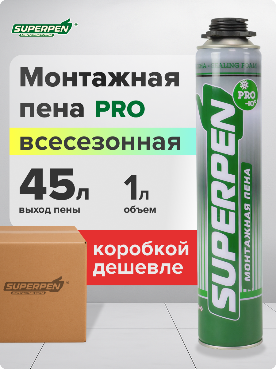 10 цен на Монтажная пена SUPERPEN профессиональная, 1л всесезонная, выход пены до 45 л