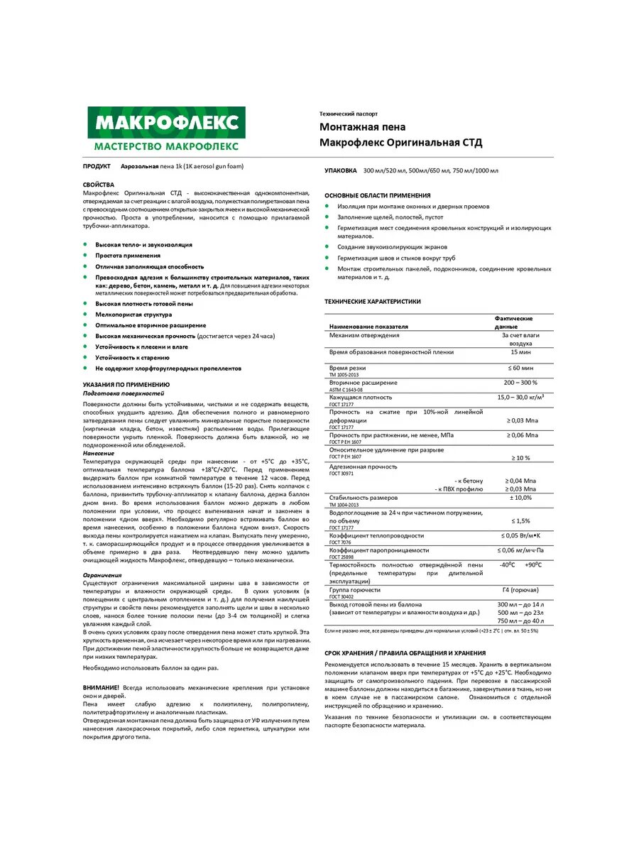 Пена стандартная Макрофлекс Оригинальная 750 мл информация: