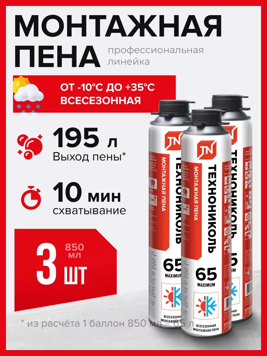 Технониколь 65 Maximum Пена монтажная профессиональная всесезонная 850 мл