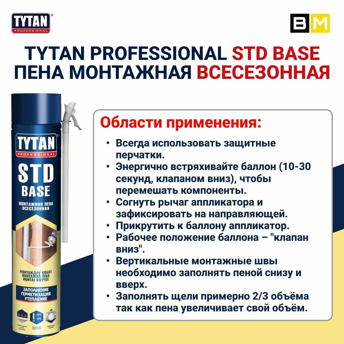 TYTAN Professional STD BASE пена монтажная всесезонная 750 мл информация: