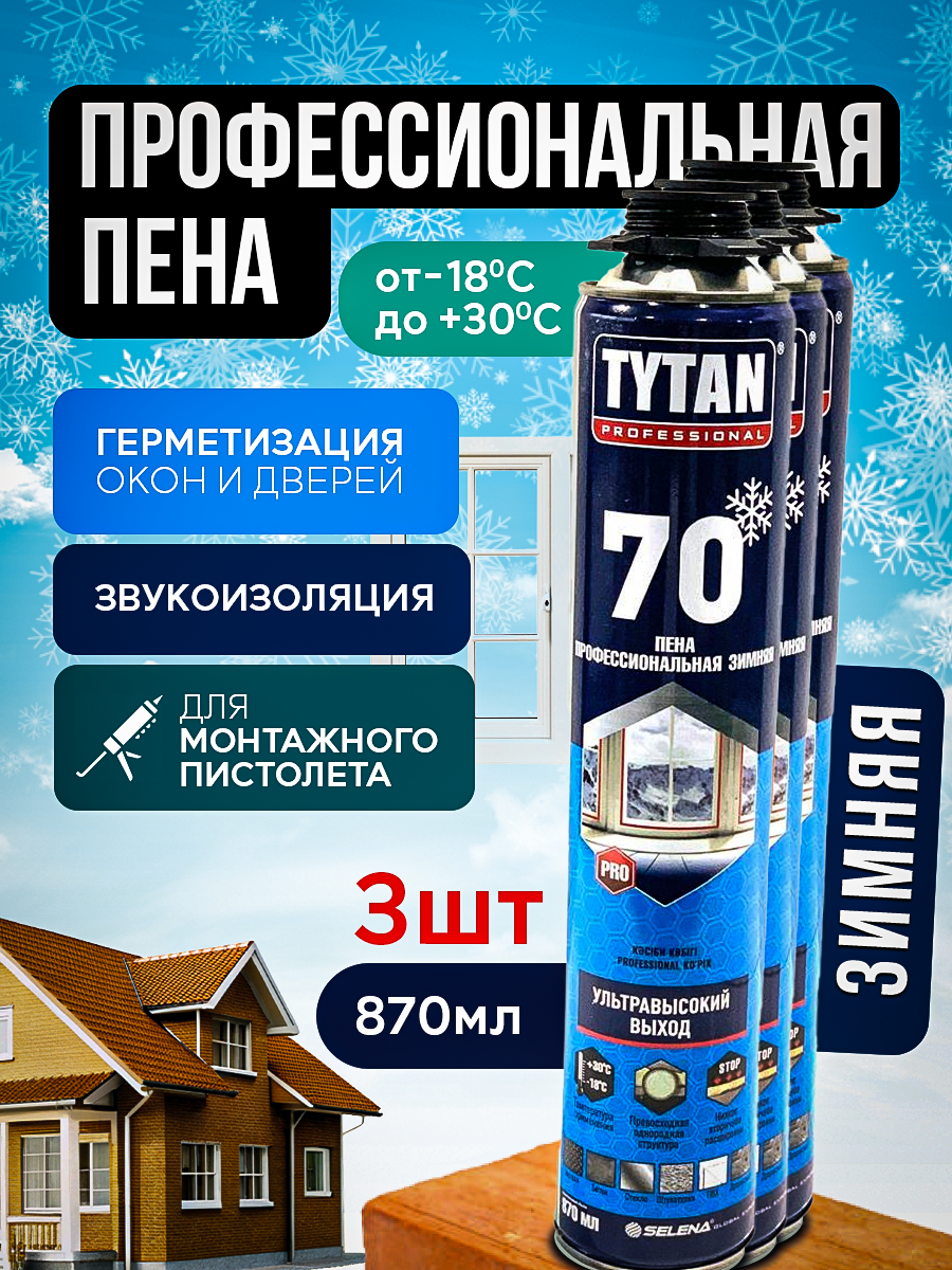 Пена монтажная зимняя Титан UNI 65, объем 750 мл для монтажного пистолета 3 шт информация:
