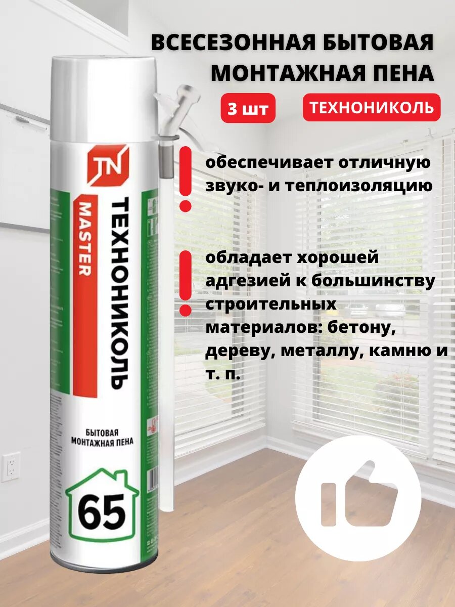 Монтажная пена Технониколь 65 Master, бытовая, с трубочкой, 3шт информация: