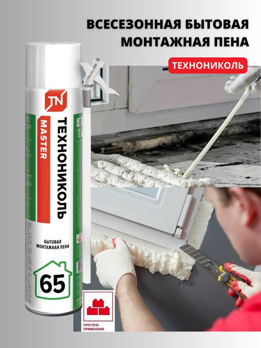Пена монтажная Технониколь "65 MASTER", с трубочкой, 1000 мл информация: