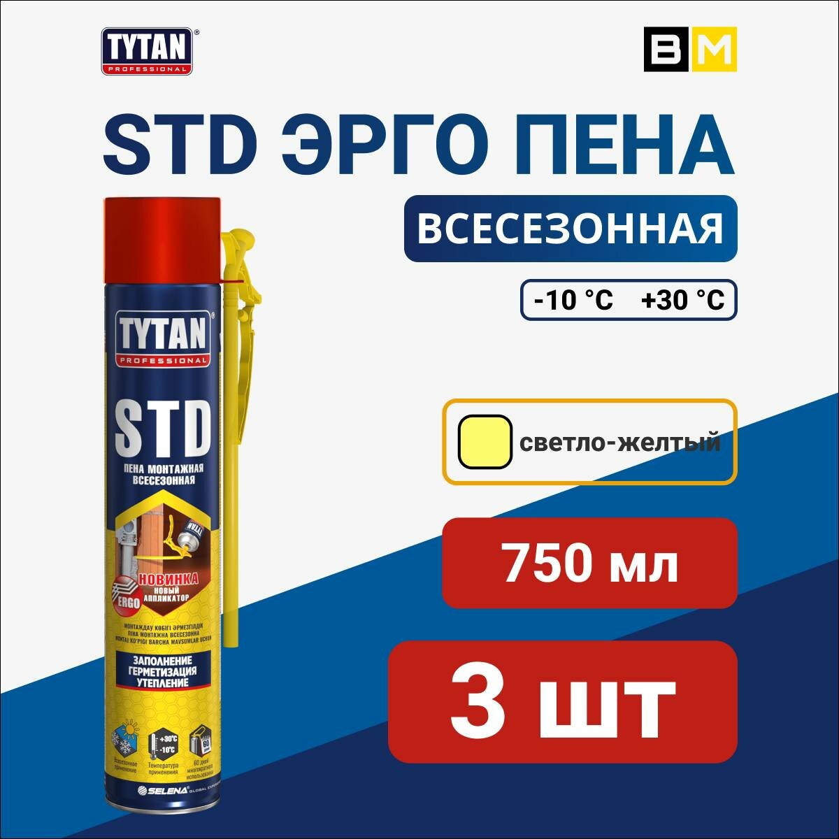 Монтажная Пена Tytan Professional STD ERGO Всесезонная 750 мл, 3шт информация:
