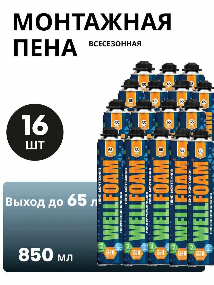 10 цен на Монтажная пена WELLFOAM Premium, 65 л, профессиональная, 16 штук