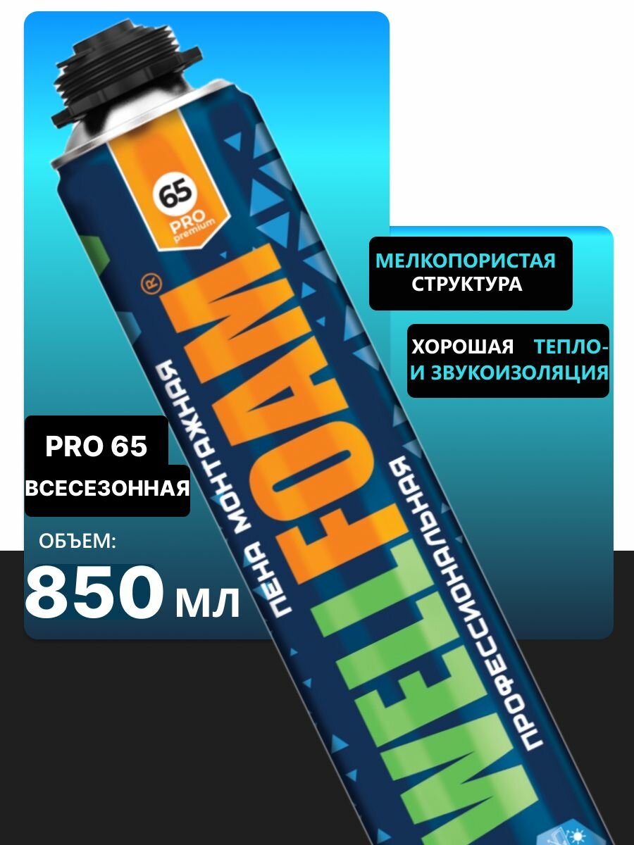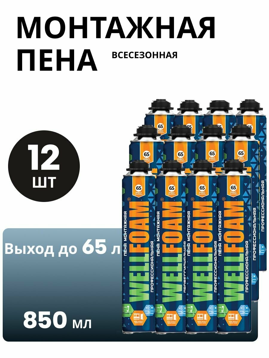Пена монтажная профессиональная всесезонная 65 PRO premium, 12 штук информация: