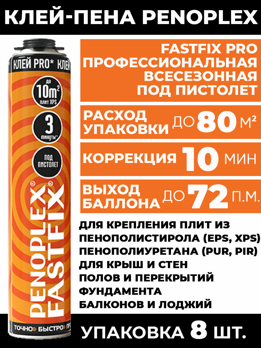 Клей-пена, пеноплэкс FASTFIX PRO, 8 шт. информация: