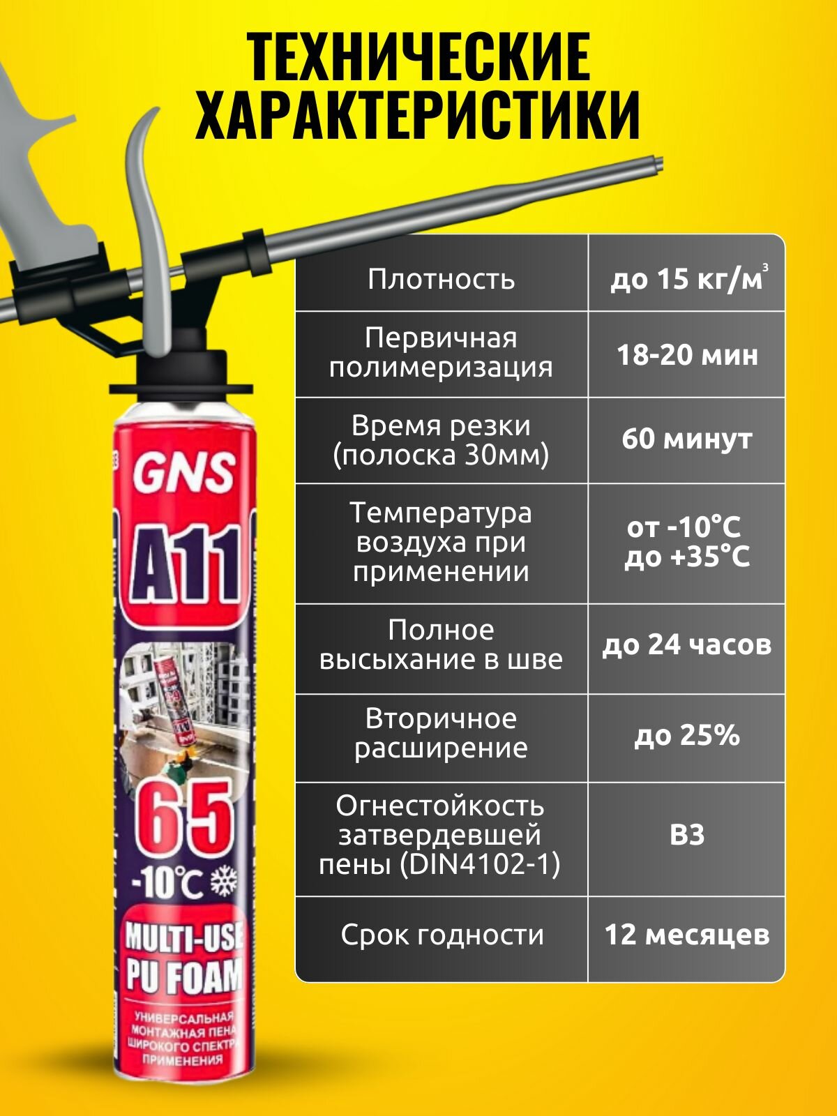 10 цен на Пена монтажная всесезонная GNS A11-65 (коробка - 12 штук) Multi Use PU foam 65L Gun Type
