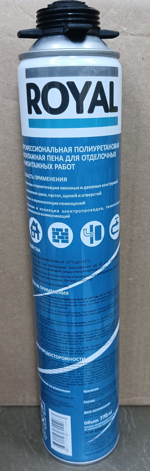 Отзывы на Профессиональная пена ROYAL 65 всесезонная, 770 мл, выход 65 л от -10 до +35 градусов.