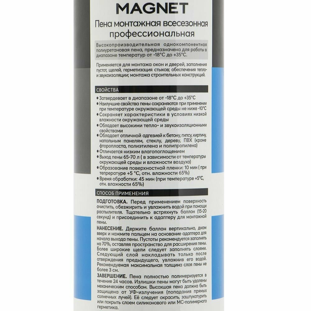 Монтажная пена профессиональная MAGNET всесезонная 850 мл информация: