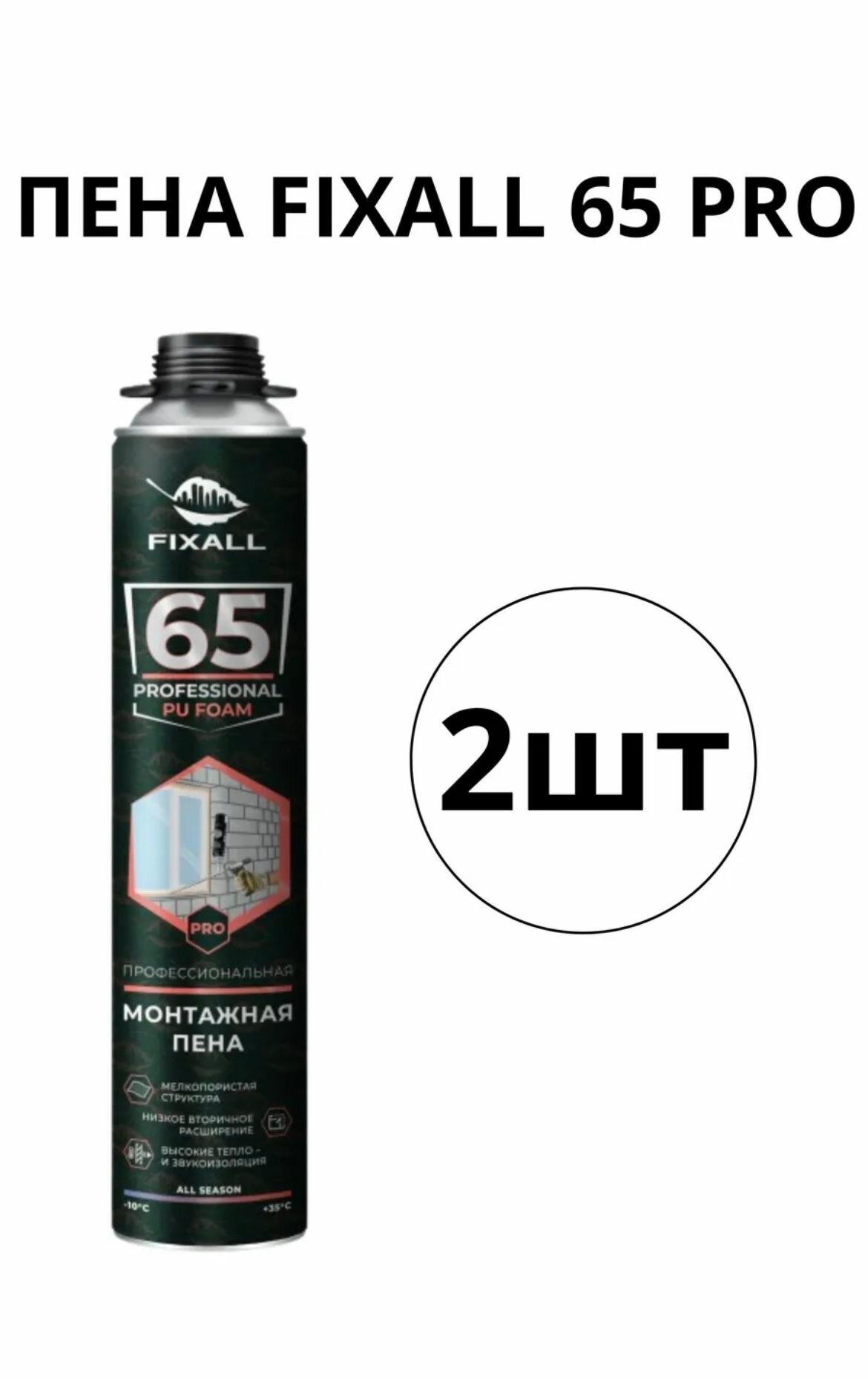 Пена монтажная всесезонная FIXALL 65 PRO 850мл 2шт информация: