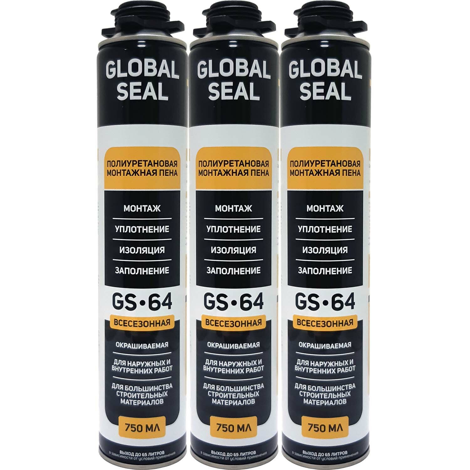 Профессиональная монтажная пена Global Seal GS-64, всесезонная, 750 мл (комплект 3 шт.) информация: