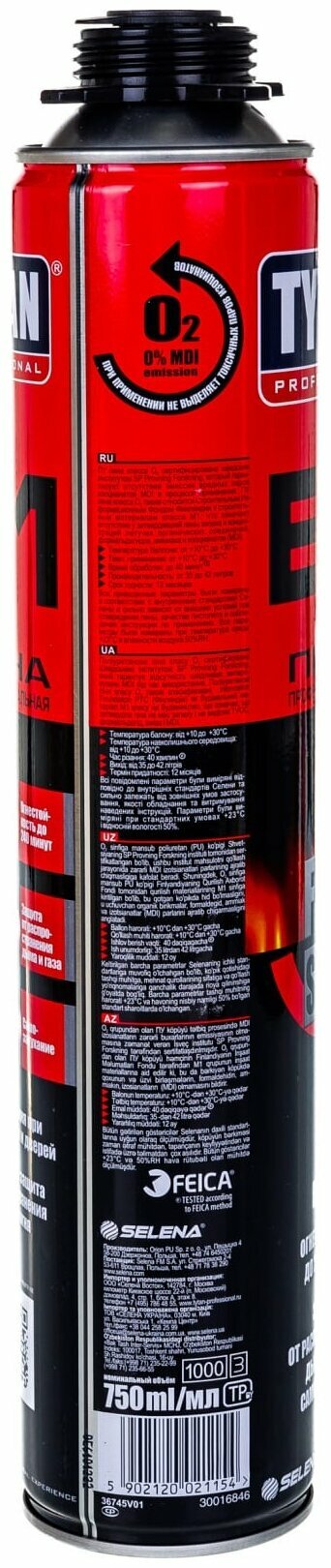 Пена монтажная Tytan, профессиональная, 750 мл, B1, огнестойкая, летняя, 21154 информация: