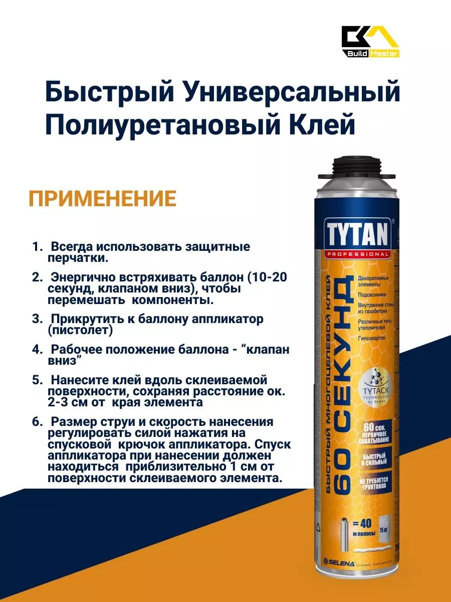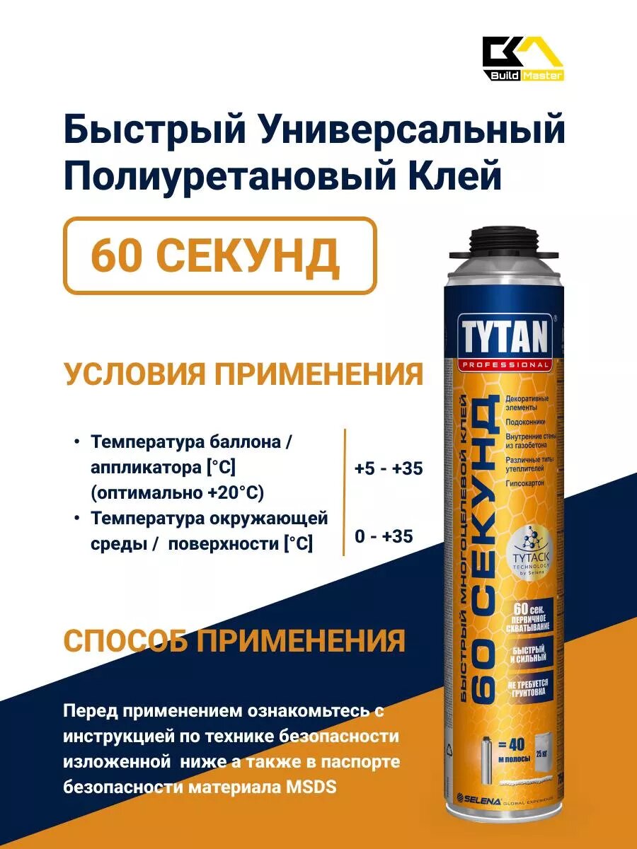 Клей-пена монтажный профессиональный TYTAN 60 секунд, 3 шт информация:
