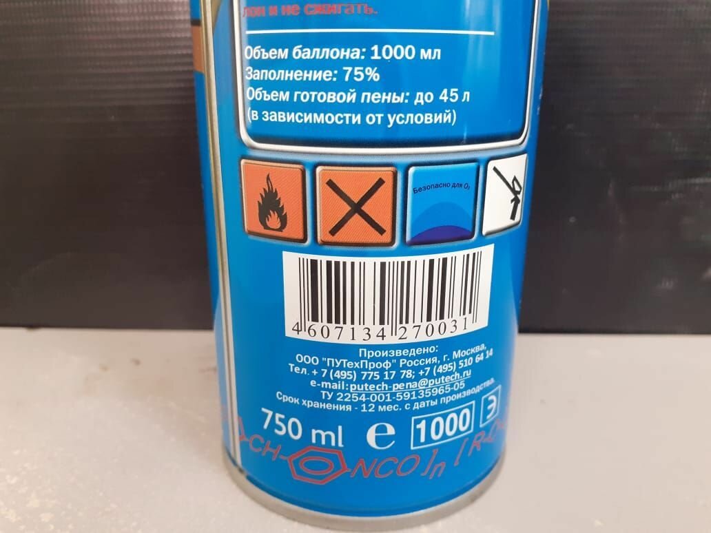Пена монтажная профессиональная 750мл 840г до 45 литров всесезонная выход -10С зимняя PUTECH PRO, информация: