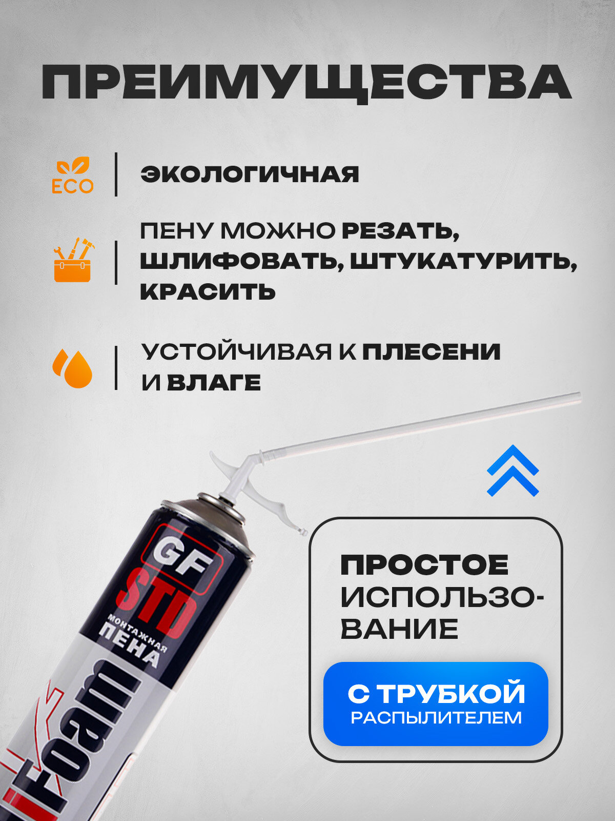 Отзывы на Монтажная пена Goldifoam STD с трубкой для выпуска пены, объем 1000 мл, всесезонная, 3 баллона