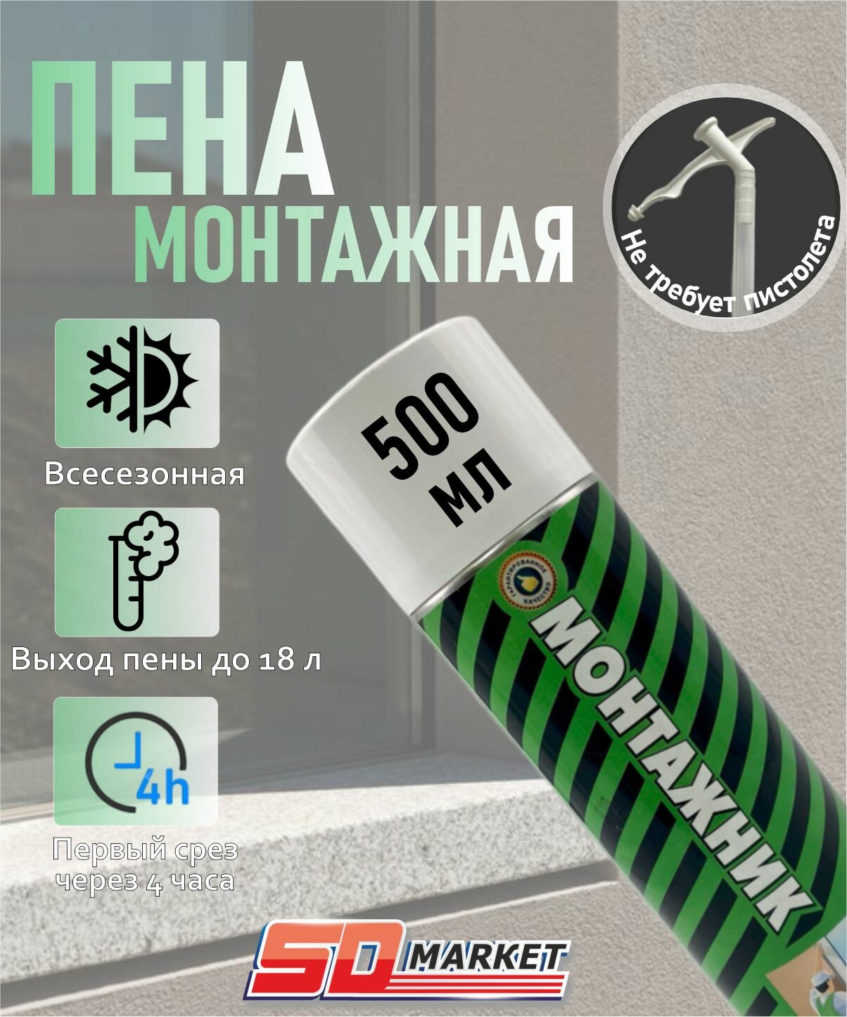 Пена монтажная всесезонная "Монтажник" 500 мл информация: