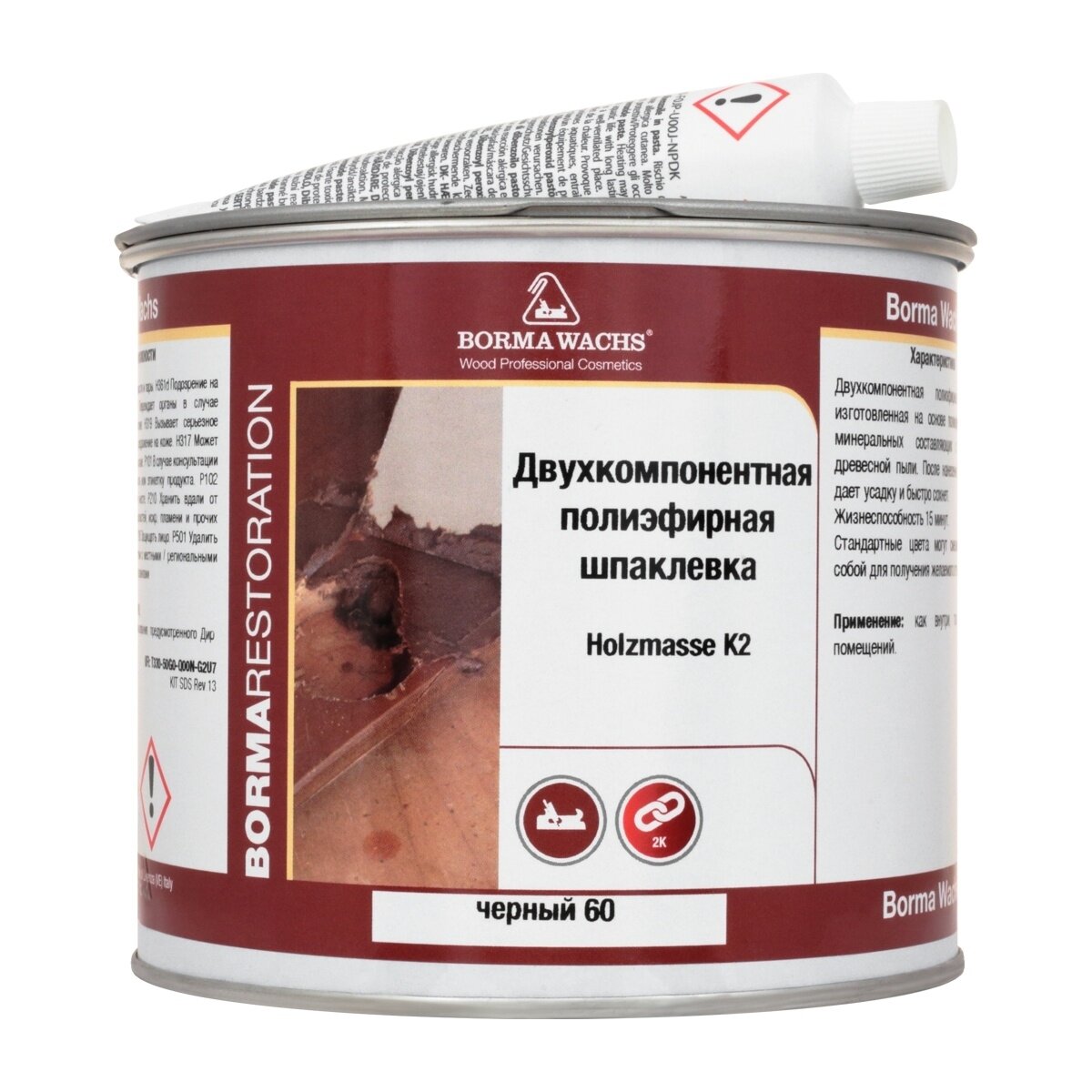 Двухкомпонентная полиэфирная шпаклевка Borma Holzmasse K2 750 мл 60 Чёрный 1960NE-6T информация: