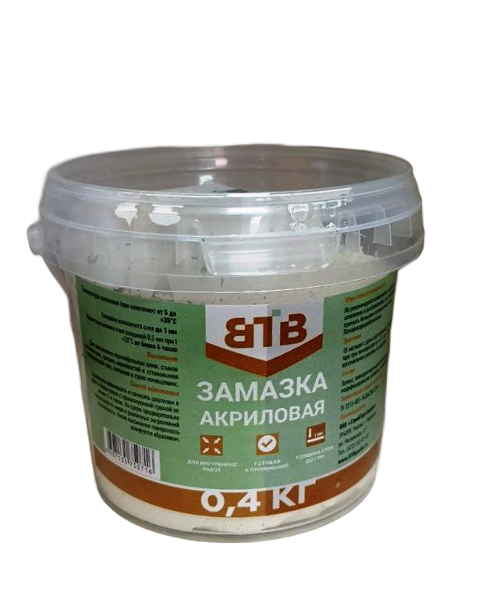 Замазка ВТВ, акриловая, универсальная, банка, 0.4 кг, для щелей, трещин, стыков информация: