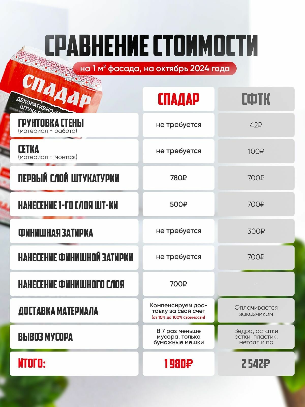Штукатурка СПАДАР СК-450, цементная, белая, для фасада, внутренних работ, 9кг информация: