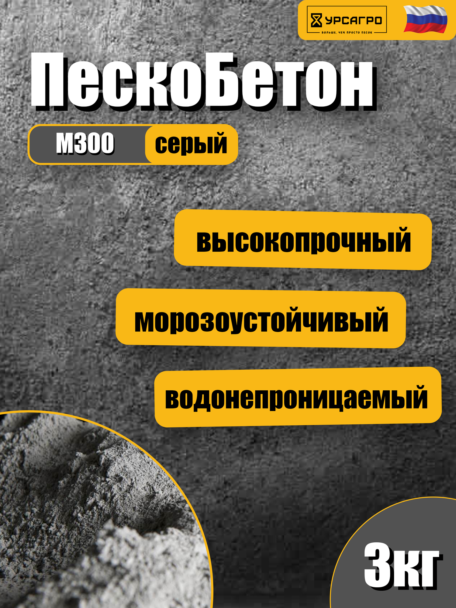Пескобетон Урсагро М300, для наружной и внутренней отделки, серый, 3 кг информация: