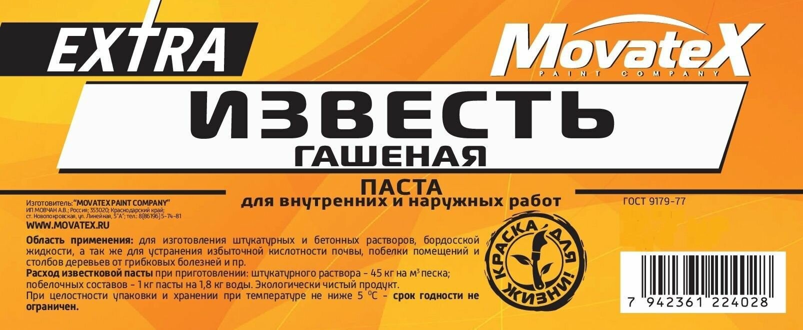Movatex Известь гашеная EXTRA паста 14 кг Т18576 информация: