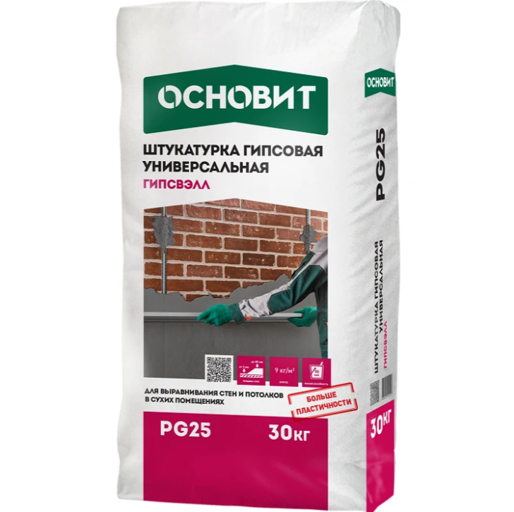 Штукатурка гипсовая универсальная Основит Гипсвэлл PG25 серая 30 кг информация: