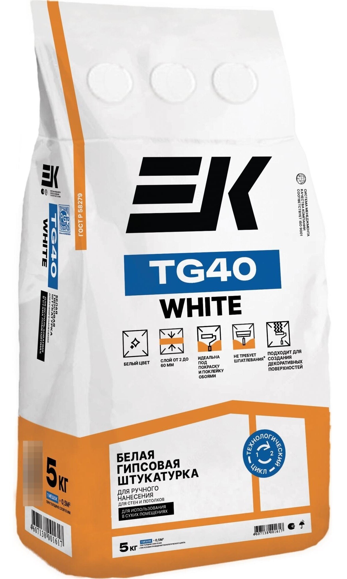 Штукатурка гипсовая ЕК TG40 White для внутренних работ, белая, 5кг / строительные смеси информация: