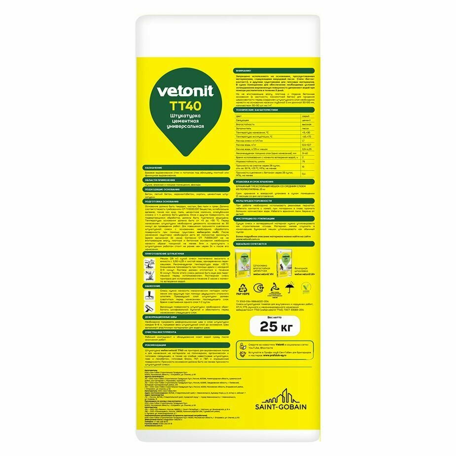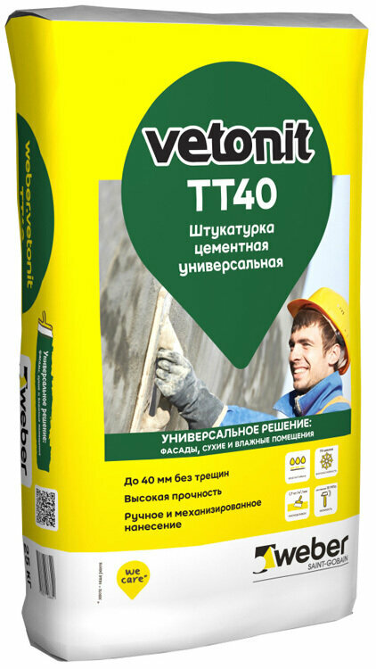 Вебер. ветонит ТТ 40 штукатурка цементная универальная (25кг) / WEBER.VETONIT TT40 штукатурка цементная универсальная (25кг) информация:
