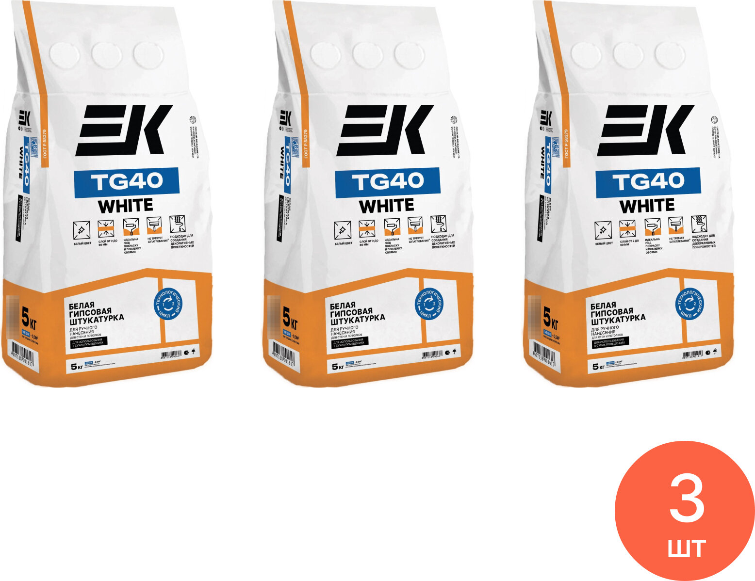 Штукатурка гипсовая ЕК TG40 White для внутренних работ, белая, 5кг / строительные смеси (комплект из 3 шт) информация:
