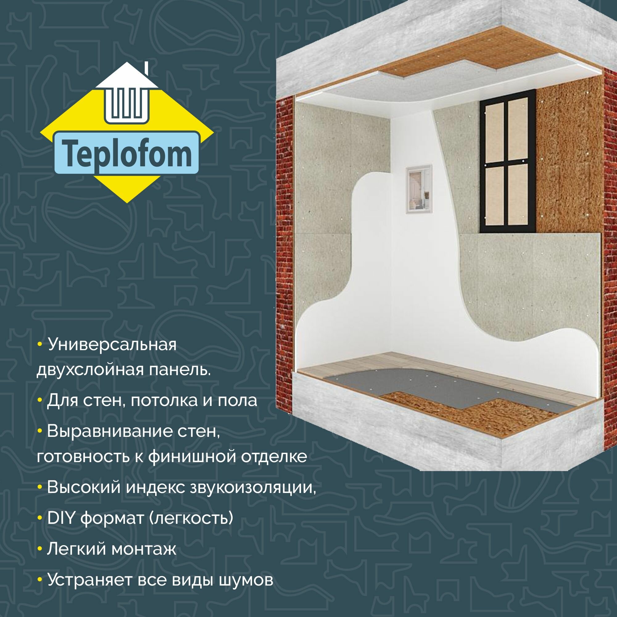 Отзывы на Звукоизоляционная панель с ГВЛ для стен, пола, потолка TEPLOFOM 1200х600х22 мм- 2шт.