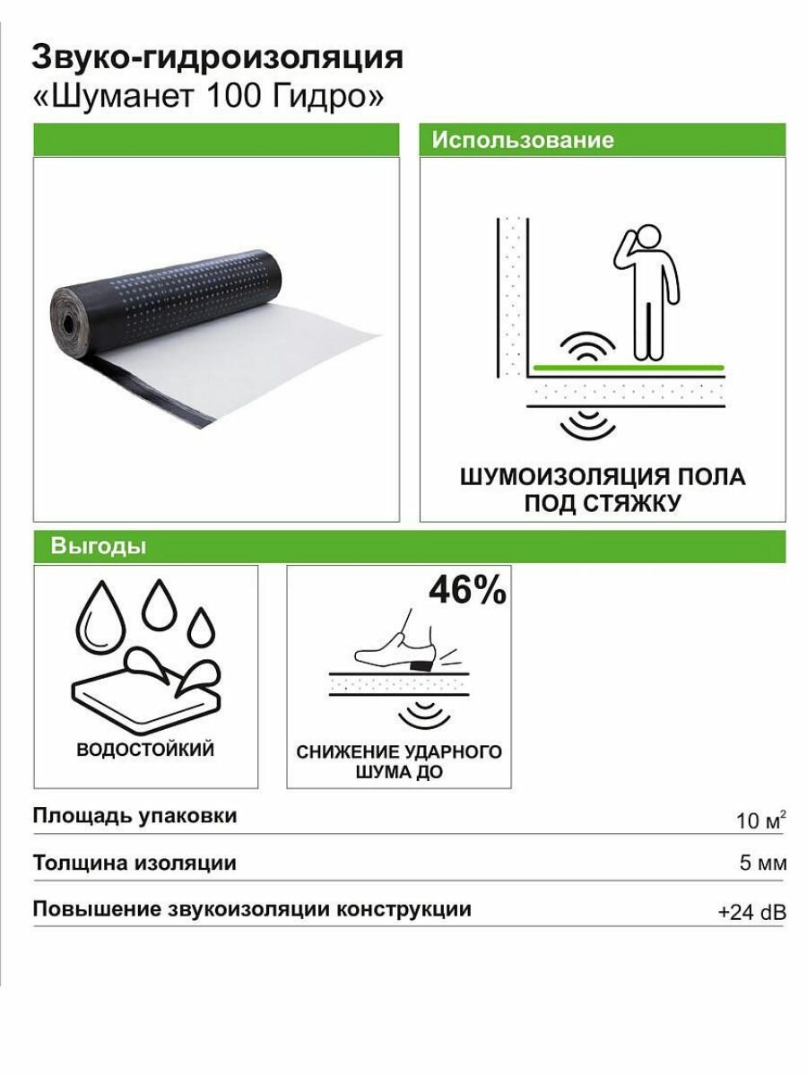 Отзывы на Рулон Шуманет-100 гидро, звукоизоляция 10м², 0,24 м², 34 кг, для пола