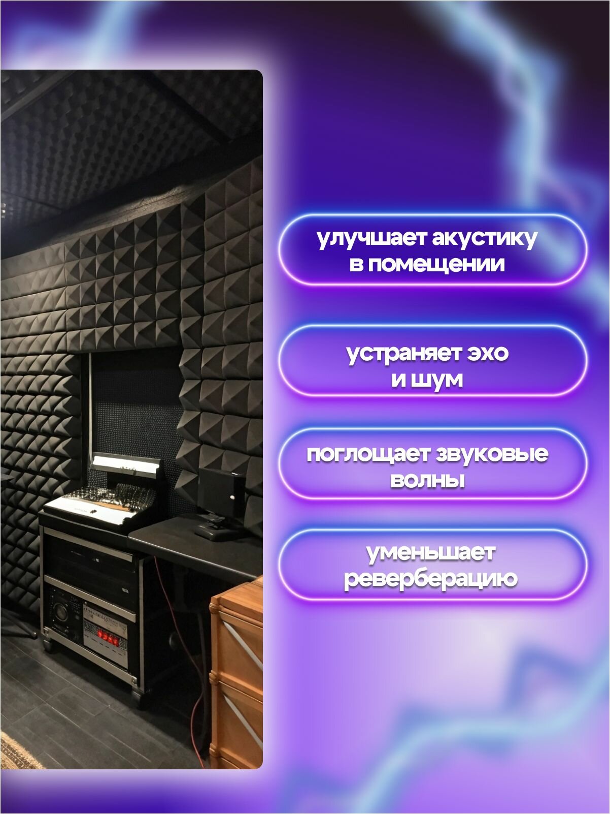 Шумоизоляция, звукоизоляция, акустический поролон пирамида 30, 475х475 мм информация: