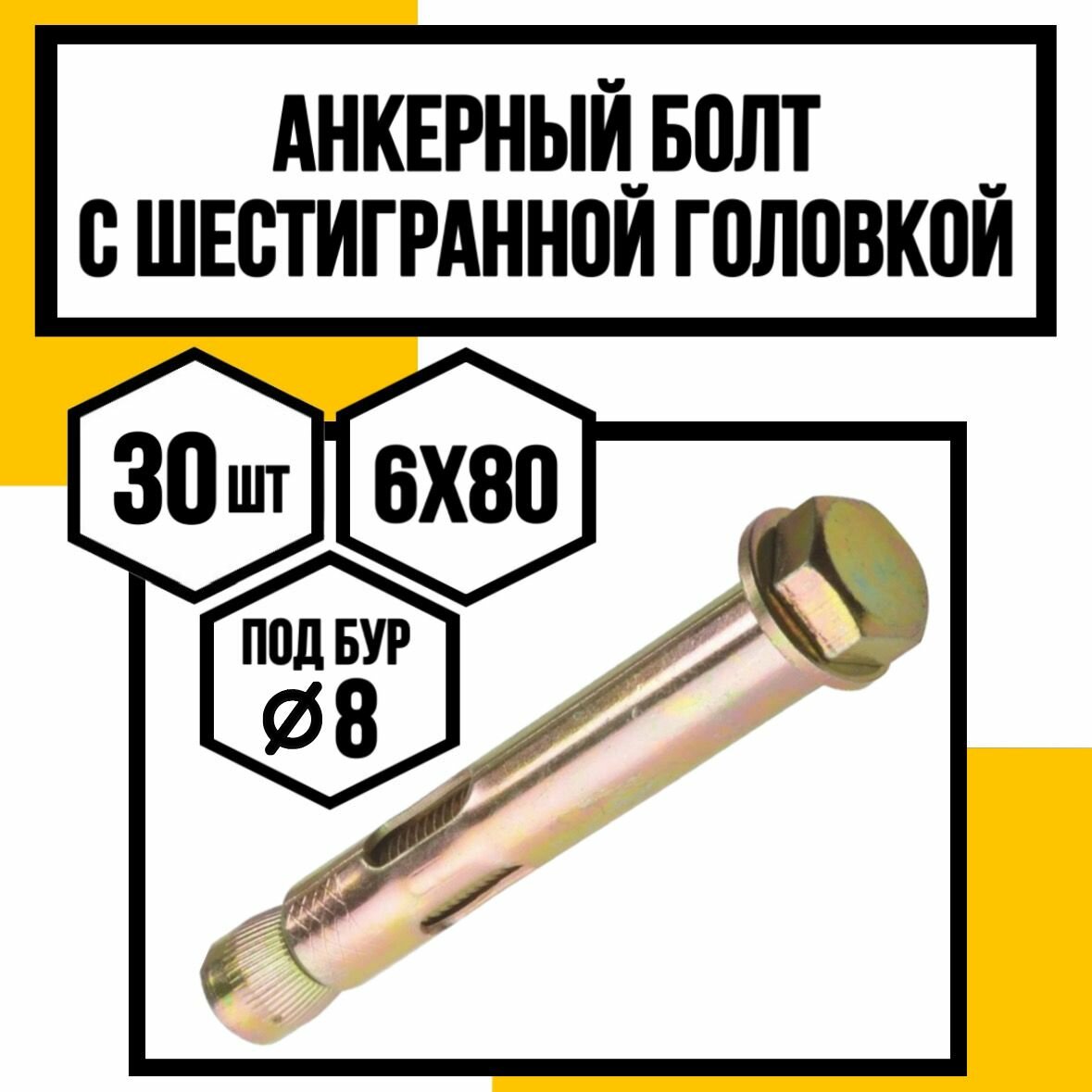 Анкерный болт с шестигранной головкой 8*80 информация: