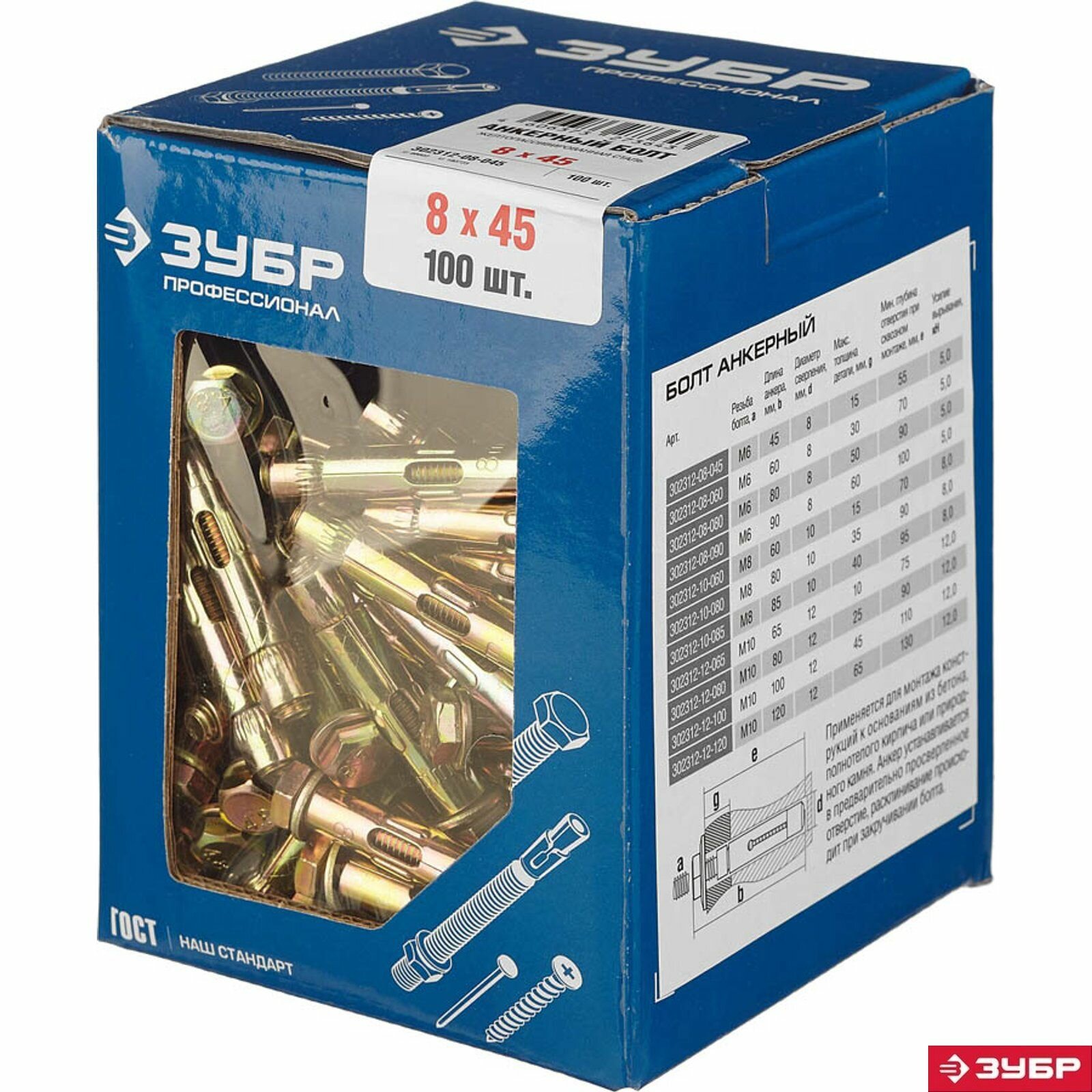 10 цен на ЗУБР 8x45 мм, 100 шт, желтопассивированный, болт анкерный