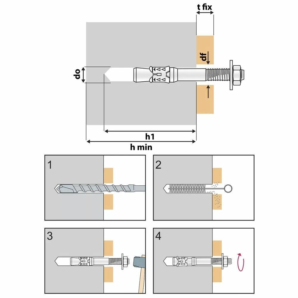 Анкер клиновой по бетону м10х90 А-КА 10мм/10x75 (6шт) информация: