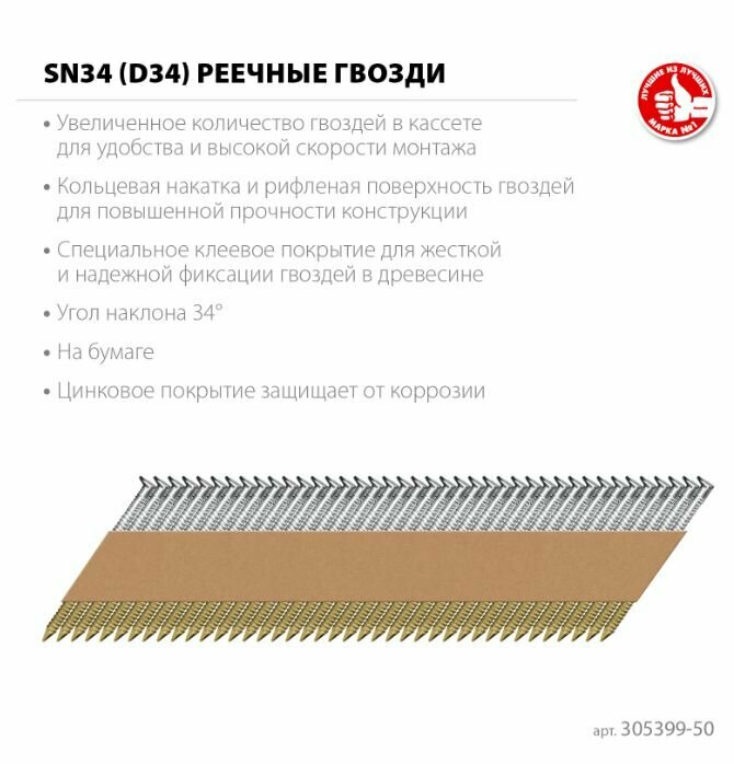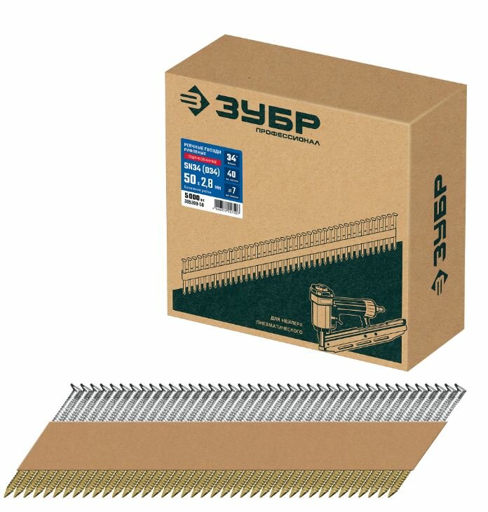 Реечные гвозди рифленые оцинкованные SN34(D34) 50х2.8 мм,5000 шт, ЗУБР 305399-50 информация: