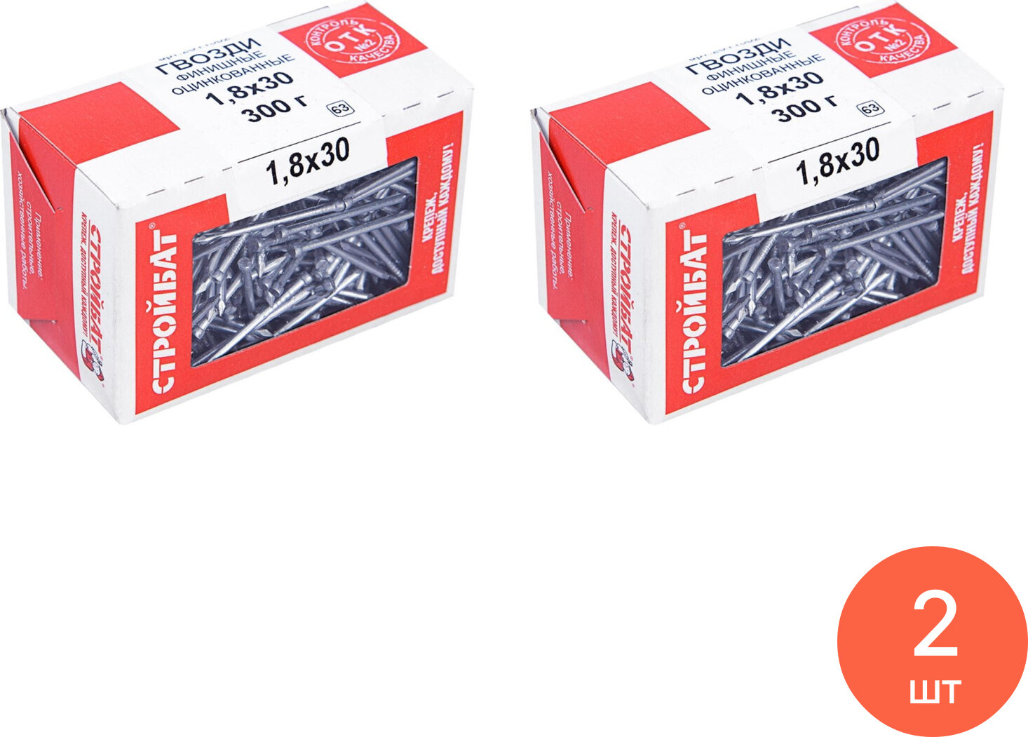 Гвозди финишные Стройбат оцинкованные, стальные, 1.8×30мм, 0.3кг / крепеж и фурнитура (комплект из 2 шт) информация: