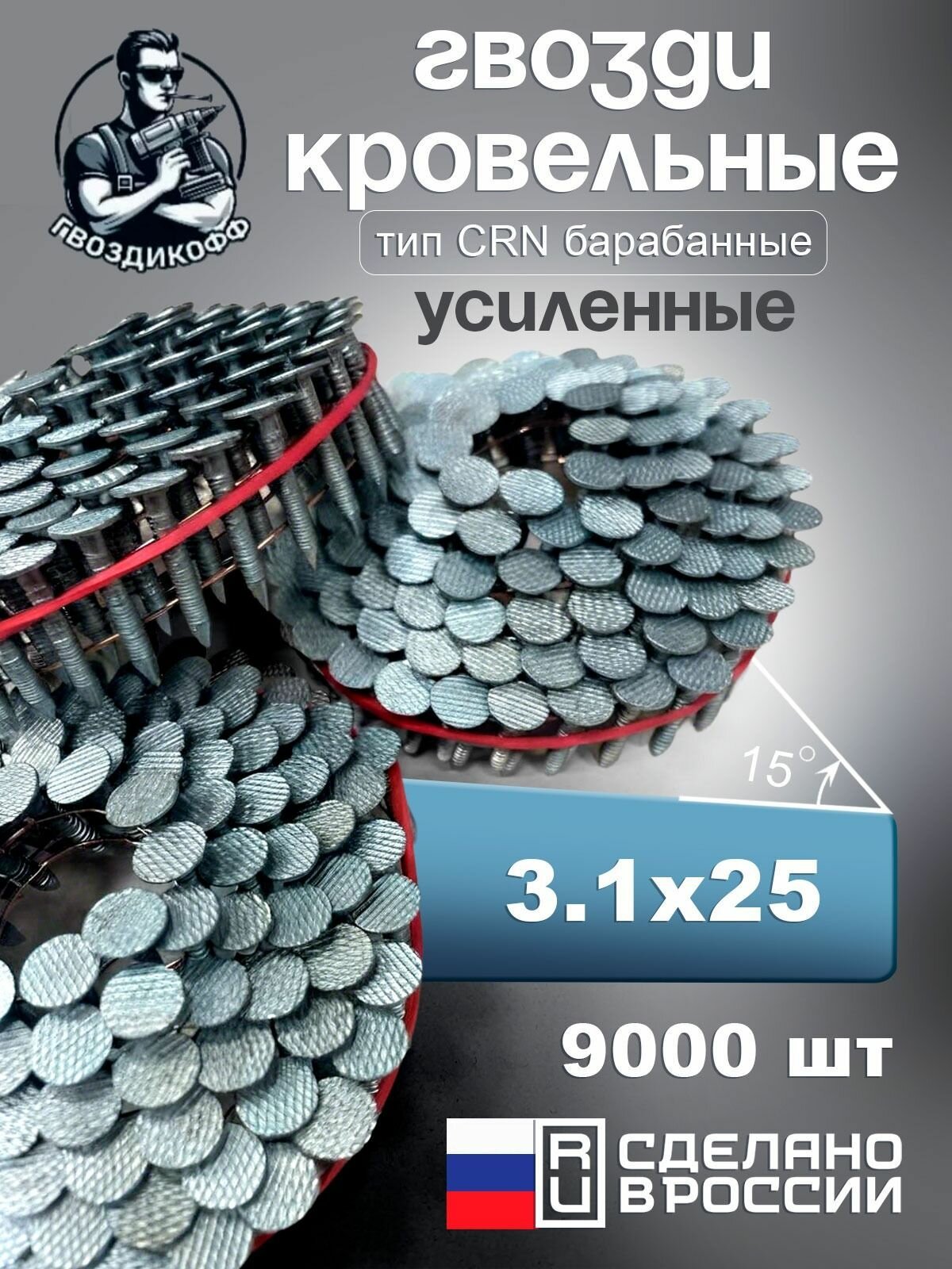 10 цен на Гвоздь кровельный 3,1/25 мм с кольцевой накаткой RiCnk, 9000 шт