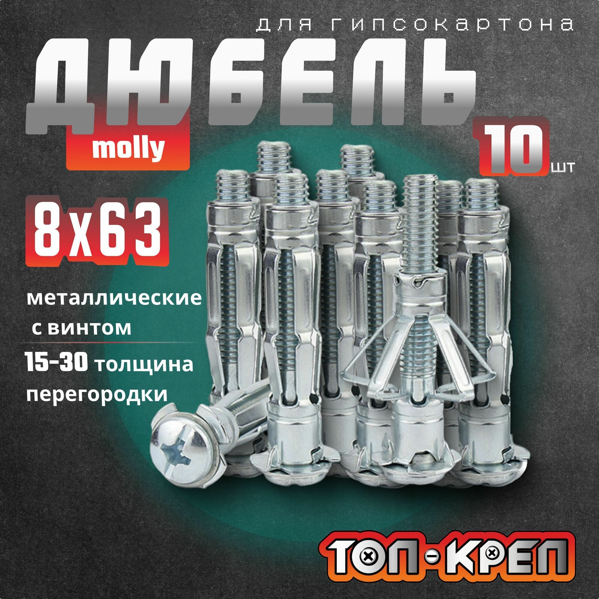 Дюбель для гипсокартона, Molly, бабочка, 8*63, 10 шт информация: