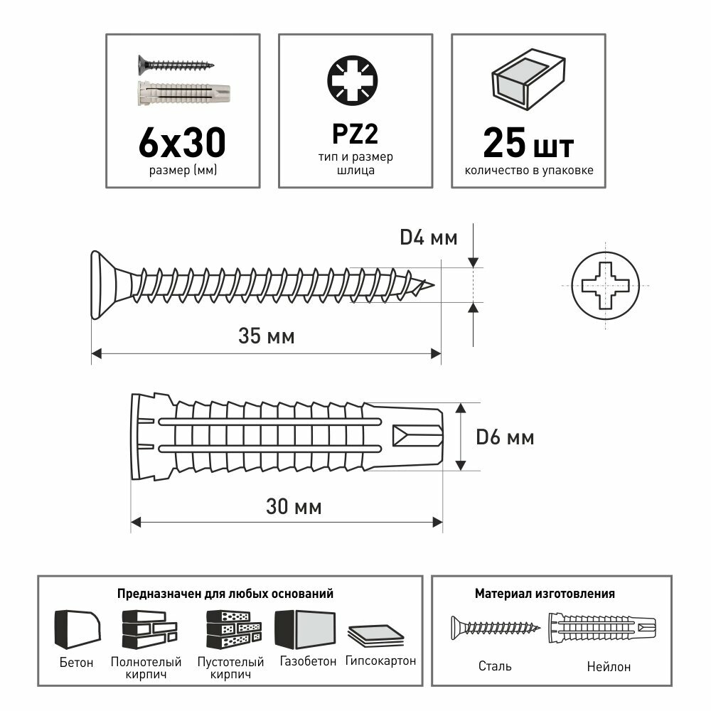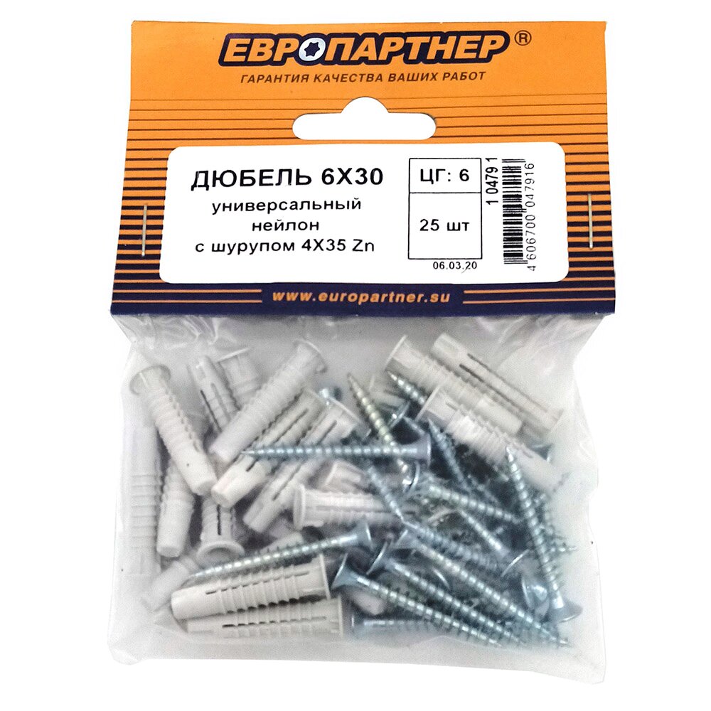 Дюбель универсальный европартнер D6х30 мм с шурупом 4х35 мм 25 шт информация: