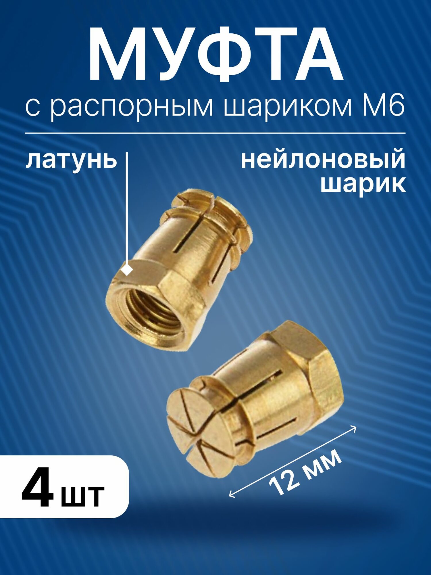 Дюбель 8x12 мм с распорным шариком M6, муфта латунная мебельная D8, 4 шт информация: