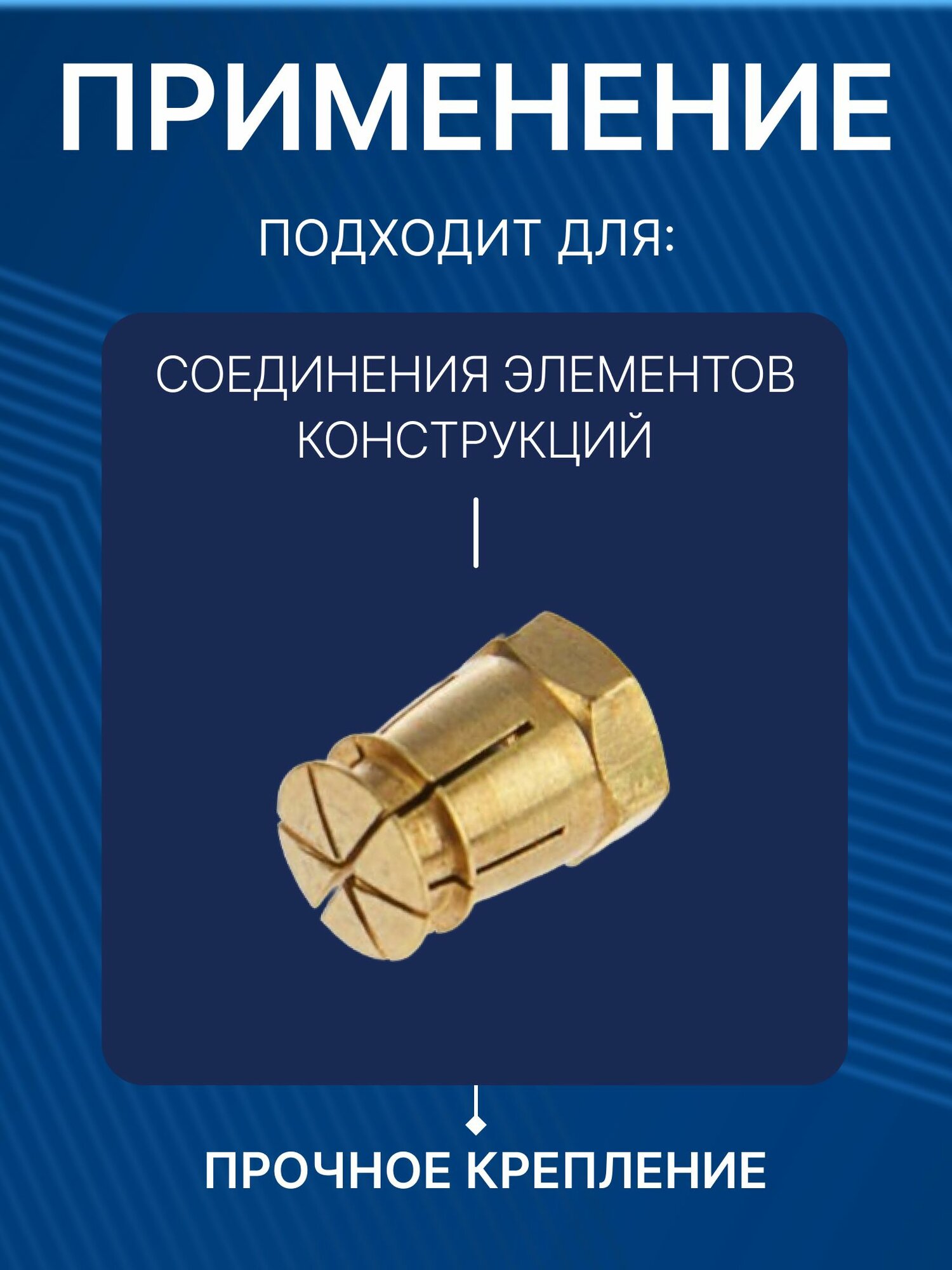Дюбель 8x12 мм с распорным шариком M6, муфта латунная мебельная D8, 16 шт 1 229 ₽