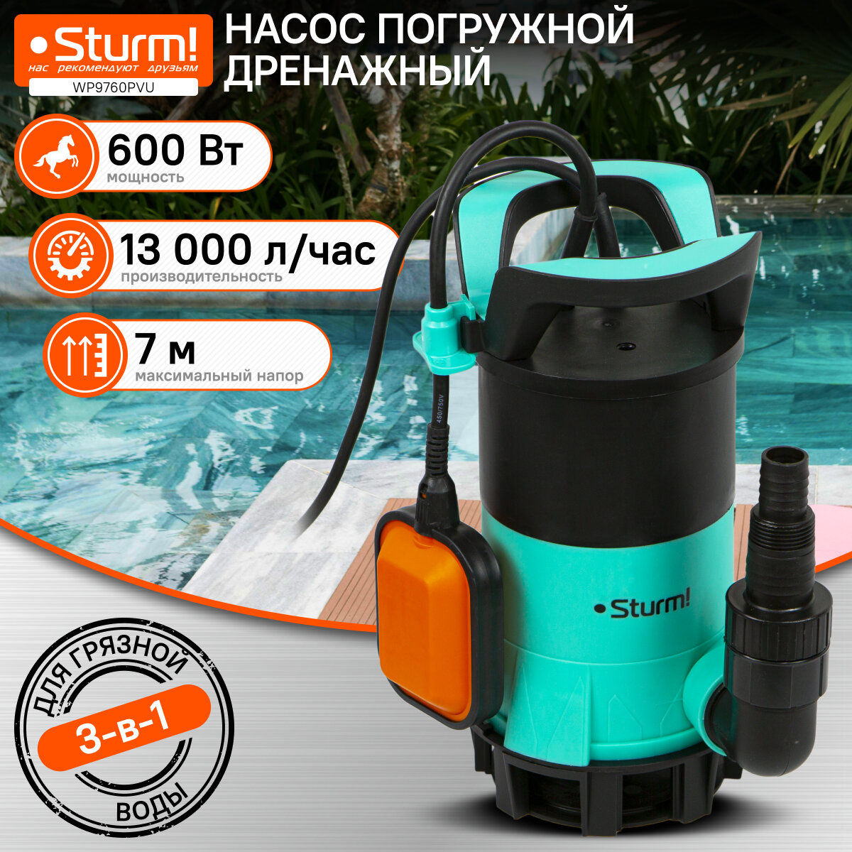 Отзывы на Насос погружной дренажный Sturm! WP9760PVU 600 Вт, част. до 30мм, 217 л/мин, напор 7м