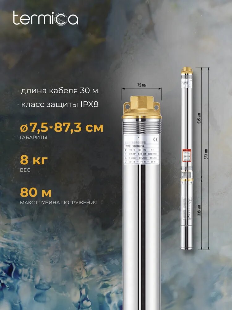 Скважинный насос Термика 3SQ/65, длина кабеля 30 м, арт. 84855033 информация: